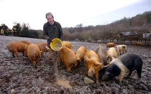 Our Free range pigs live outdoors and eat local potatoes & barley.