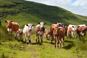 100% grass fed cattle graze on grass in summer & silage in winter.