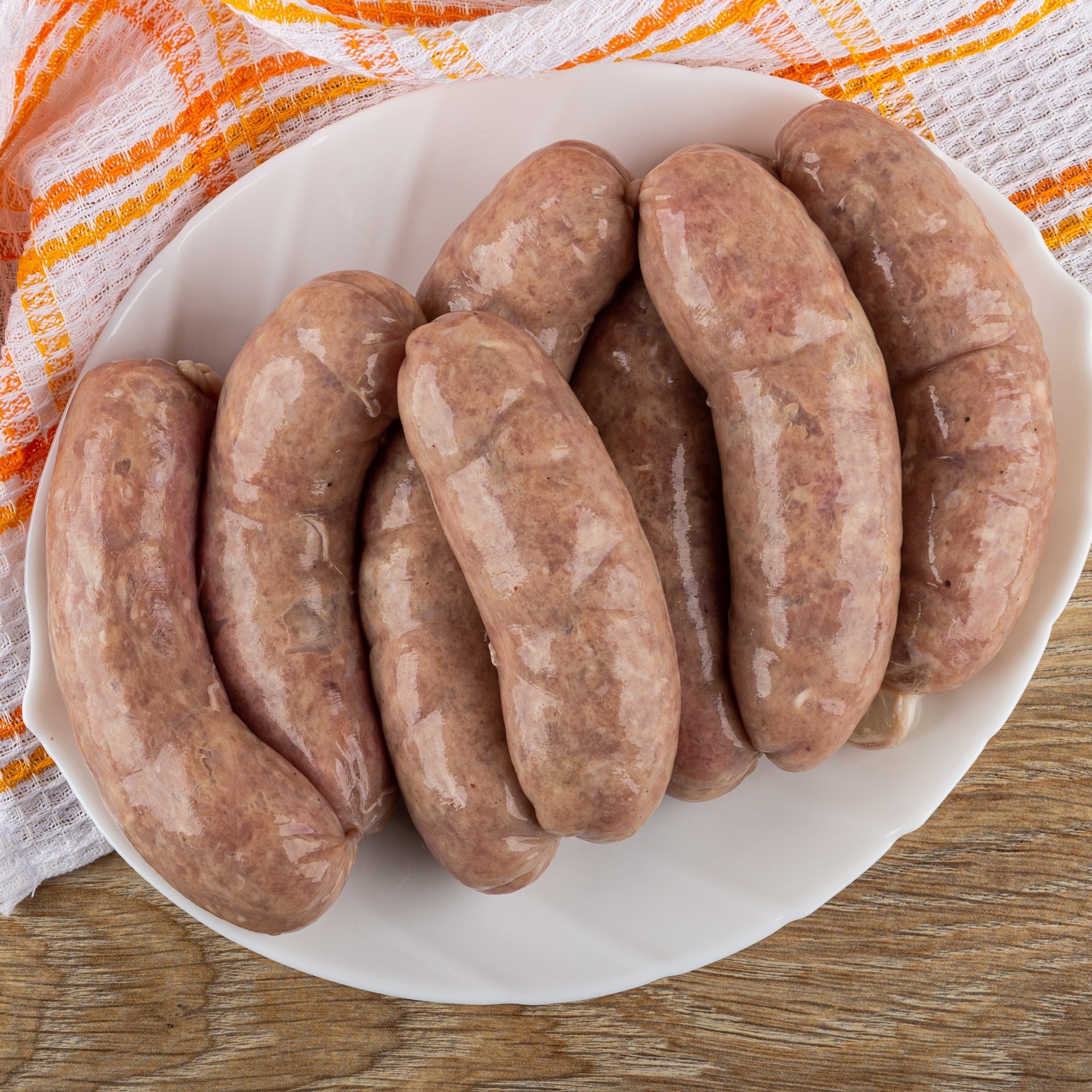 These are quick frozen, un-aged chicken sausages made from free range chickens which are raised outside on fresh grass. They are made of 97% minced free range chicken with 3% herbs, onions, garlic, salt and pepper. They contain no grain, rusk or gluten.